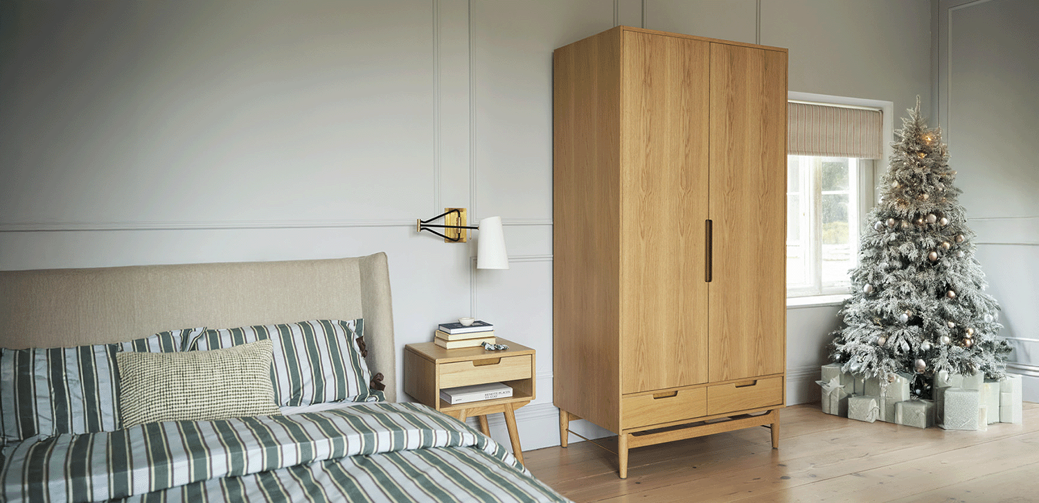 Rule number one is that your bedside table should fit. Smaller clearance around your bed? No problem, opt for a narrower bedside table (don't worry, a slim bedside table will still have enough surface space for your essentials). Choose a material that suits your home and ensure it's got enough storage to function around your life.