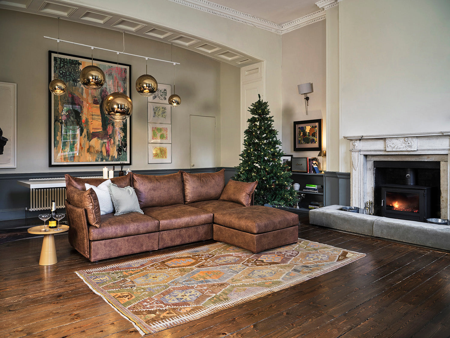 Brown sofas are a warm neutral, so pairing them with decor in other warm neutrals works well. Go for cream, off-white, and beige for a more minimalist Scandi-inspired look. For colour, stick with retro earthy tones of vine green, burgundy red and mustard yellow.