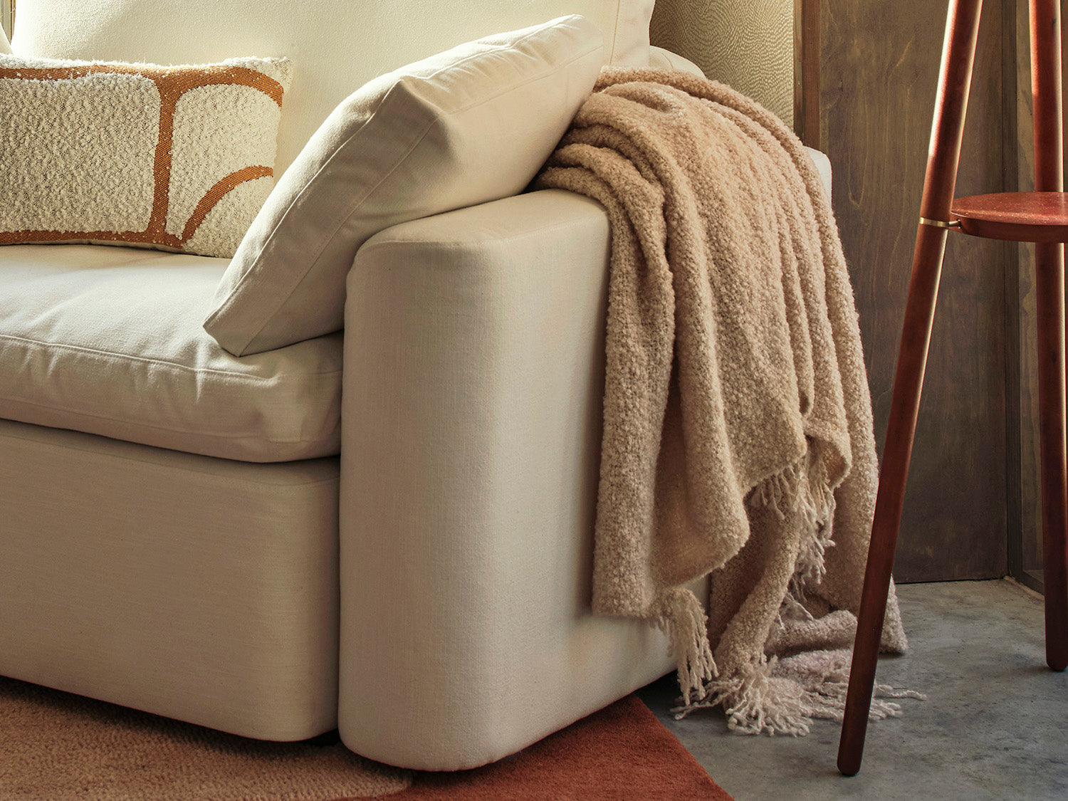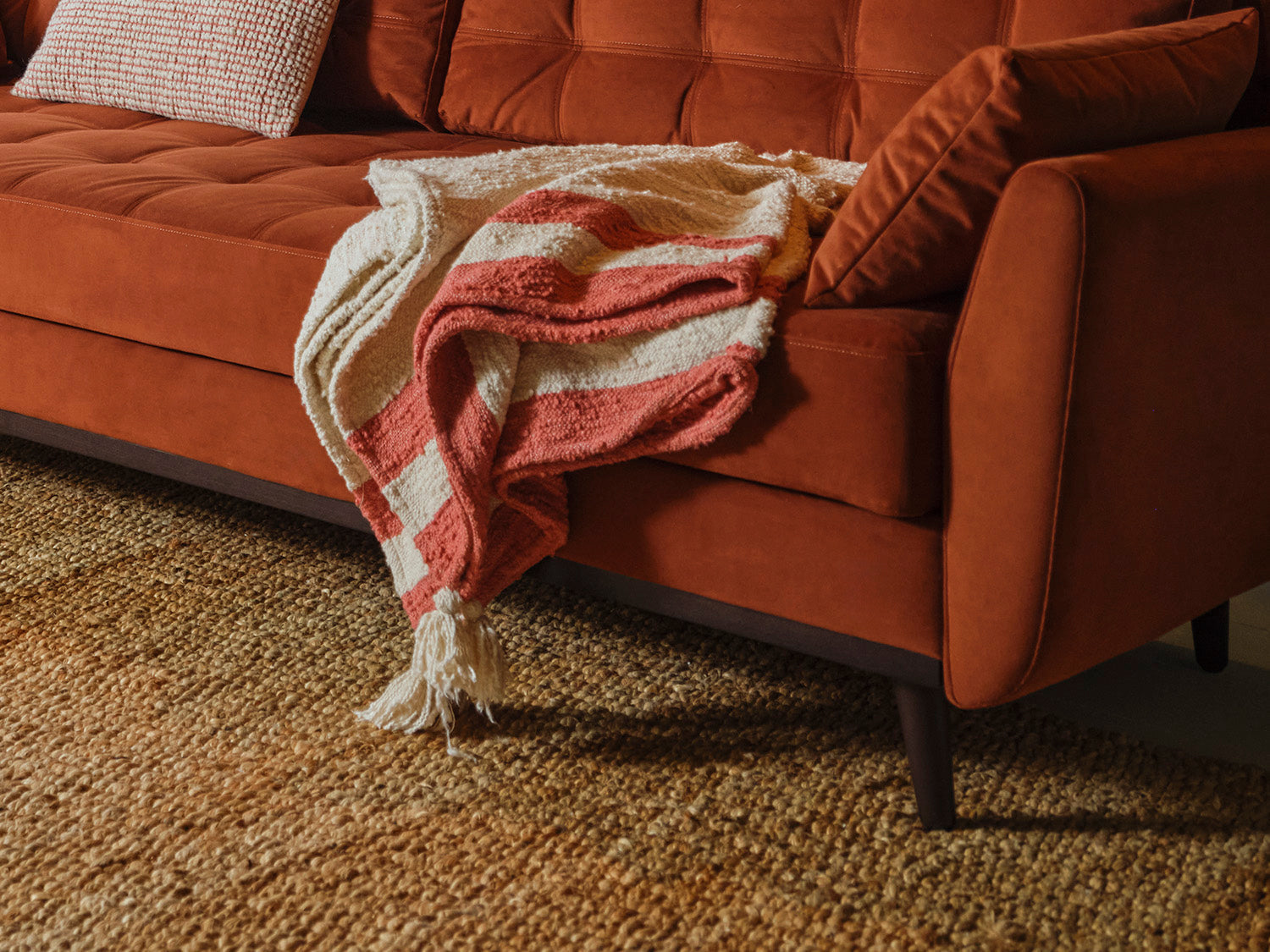 Using cushions and throws to dress a sofa can transform a room as well bring together interior elements. When styling a sofa throw, either; drape the throw over one corner of the sofa to create a relaxed, casual look; fold the sofa throw and fold it across the back of the sofa to create a neat tidy look; roll the throw and place it at the back of the sofa.