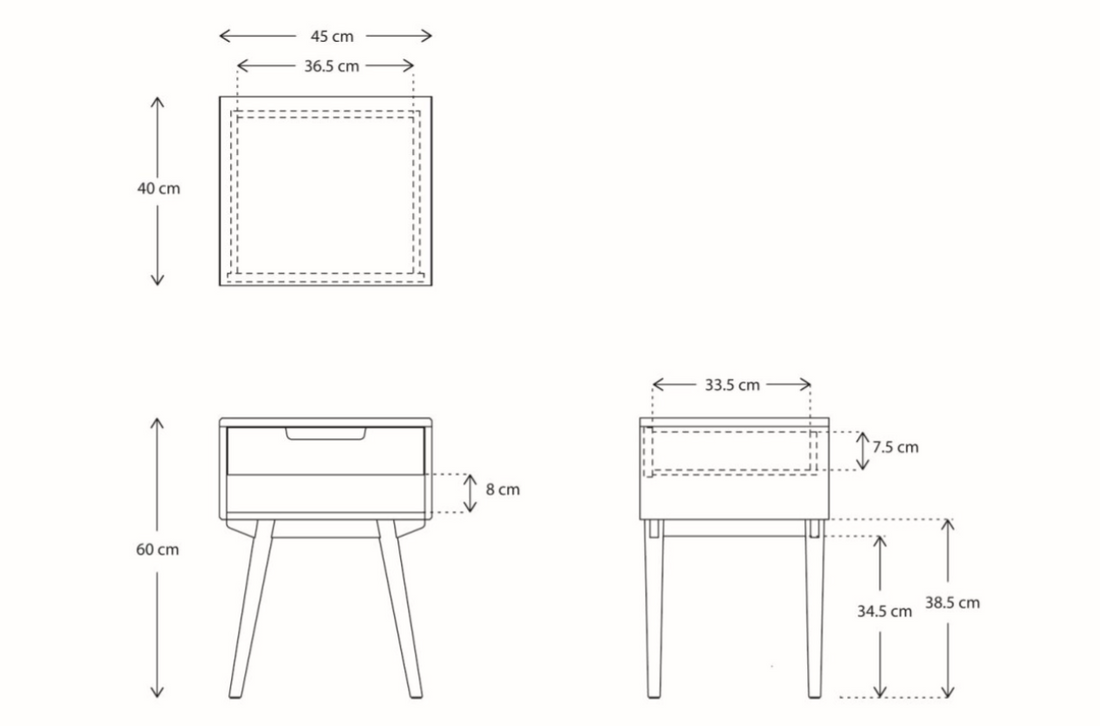 Your new night-time companion, Bedside Table 01 features a single storage drawer with a brushed brass handle and plenty of surface space to house your favourite book, mug, and bedside lamp. Finished with tapered legs for a modern touch with an anti-tip wall fixture for a secure fit. The bedside table is also built with solid white oak legs and an easy clean oak veneer top, guaranteeing durability and longevity. Arrives fully assembled.